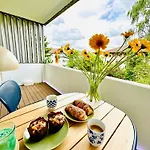 Bahçe manzarasına sahip Modern City Studio With Balcony dairesinin odalarında balkon, kahve/çay makinesi, uydu kanallı düz ekran televizyon bulunur. Modern City Studio With Balcony dairesinde 1 yatak odası vardır.